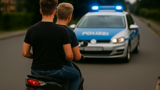Zwei Jugendliche sind am Dienstagnachmittag auf einem Zweirad einer Polizeistreife davongefahren und haben möglicherweise Fußgänger und Radfahrer gefährdet.