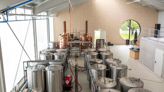 Es ist ein Startschuss mit Vorlauf: Vor sechs Jahren in einem ehemaligen Drogerie-Markt gegründet, haben sie nun mithilfe des Investors, Projektplaners und Besitzers Axel Wagner auf dem Gelände im Kirchheimer Faberweg das, wovon Craftbeer-Brauer träumen: Die vom Kirchheimer Büro mehr*archtitekten entworfene, 680-Quadratmeter-Halle im modernen Industriedesign, mit viel Glas und hellem Epoxidharz-Boden besticht durch ihre Helligkeit. Der Bauantrag wurde 2018 gestellt, Baubeginn war dann aber erst im Oktober 2019. Nach mehr als einem Jahr Bauarbeiten und Einrichtung ist die Freude bei allen Beteiligten nun umso größer.