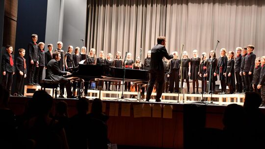 Die Gesangsklassen der Jahrgangsstufen 5 bis 7 bewiesen mit Liedern aus „Harry Potter“, „Die Tribute von Panem“ und dem Musical „Drei Wünsche frei“ ihr Gespür für emotionale Tiefe und harmonische Präzision. Besonders eindrucksvoll war die Interpretation des Spirituals „Witness“ sowie das bewegende „Shenandoah“ des Mittel- und Oberstufenchors, das mit feiner Dynamik Gänsehautmomente bescherte.