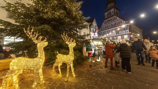 Oberbürgermeister Pascal Bader hat die Hüttenstadt in der Kirchheimer Marktstraße offiziell eröffnet. Bis 21. Dezember weisen Töne und Düfte den Weg zum Rathausplatz.