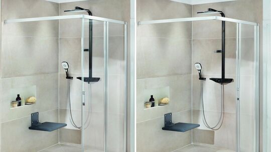 Schon kleine Anpassungen können das Duscherlebnis erheblich verbessern – etwa eine neue Rainshower-Brause, eine pflegeleichte Schiebetür oder ein moderneres Design. Die Duschen von Kermi Duschdesign überzeugen zudem mit raffinierten Funktionen: Pendel-Falttüren, die sich variabel an die Wand klappen lassen, oder raumsparende Gleittüren schaffen zusätzliche Bewegungsfreiheit – ideal auch für kleinere Bäder. Alle Modelle sind einfach in der Handhabung, intuitiv zu bedienen und mit vielfältigen Komfort-Features ausgestattet.
