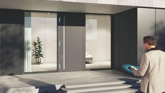 Das smarte Türschloss bietet auch einen Sicherheitsvorteil: Elektronische Systeme ersetzen das klassische Schlüsselloch und häufig auch den Schließzylinder. Die Verriegelung erfolgt dann – ähnlich wie bei modernen Fenstern – über Zapfen, die in der Türzarge einrasten. Und dank Notstromversorgung bleiben die Systeme selbst bei Stromausfall betriebsbereit. Von innen kann die Tür über einen unauffälligen Taster im Rahmen oder an der Wand bedient werden. So wird die Haustür Teil eines ganzheitlichen Sicherheitskonzepts.