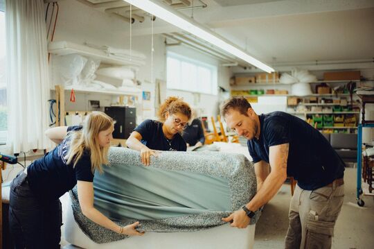 Um dem eigenen Qualitätsanspruch gerecht zu werden, setzt das Unternehmen konsequent auf das Motto „Made in Holzmaden“. Verarbeitet werden fast ausschließlich geprüfte Materialien aus Deutschland. „Unsere Produkte stehen seit über 70 Jahren für herausragende Qualität und echte Handwerkskunst“, erklärt Thomas Haible. Mehr als 25 erfahrene Mitarbeiterinnen und Mitarbeiter, ständige Weiterentwicklung und modernste Fertigungsmethoden sichern den hohen Standard und machen Haible auch für die Zukunft bestens aufgestellt.