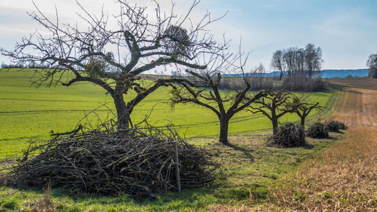 Weil der Schwabe so „schaffig“ ist, kennt er keinen Feierabend. Nach getaner Arbeit im Hauptberuf zieht es ihn, je nach Jahreszeit, auf „d’Boomwies“ (Streuobstwiese) zum „Beemschneida“ (Baumschnitt). Was dabei abfällt, wird auf dem „Krälesbock“ zu „Kräla“ (Reisigbündel) gepresst und anschließend sorgfältig verschnürt. „Kräla“ eignen sich „zom Ofaozenda“ (um damit den Ofen anzuheizen), beispielsweise „em Bachhaus“ (Backhaus) bei der Herstellung von „Blaaz“ (Blechkuchen), „Bätscher“ beziehungsweise „Dätscher“ (Hefeteigfladen) oder auch einem „Brittle“, das wahlweise als „Rahm“- oder „Zuckerbrittle“ auf den Tisch kommt.