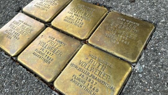 Am 30. August 1927 kam Ruth Vollweiler in Kirchheim auf die Welt. Hier verlebte sie mit ihren großen Brüdern und ihren Eltern wohl zunächst eine glückliche Kindheit. „Eigentlich müsste hier auch ihr Grab sein“, meint ihr Stiefsohn Roberto Frankenthal. Er hat kürzlich die Verlegung von sechs Stolpersteinen für Familie Vollweiler am Ziegelwasen durchgesetzt. Denn für ihn ist klar: Eigentlich hätte die kleine Ruth in Kirchheim ihr Leben verbringen und alt werden können.