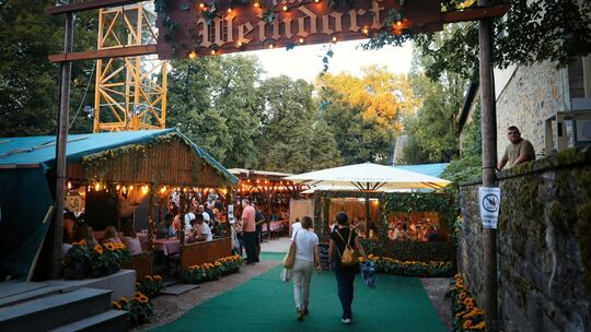 Wer befürchtet hatte, das Weindorf würde einem Baustellencharakter ähneln, wurde eines Besseren belehrt. In den Weinlauben und unter den großen Schirmen kam wie gewohnt die typische Stimmung und Weinseligkeit auf – da fiel der Kran kaum ins Gewicht, er wurde kurzerhand von den Machern ins Ambiente integriert.
