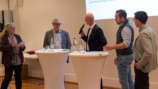 Zum letzten Abend der Kirchheimer NEMF-Wochen 2025 für Nachhaltigkeit, Energie, Mobilität und Fairen Handel war Oliver Wagner ins Alte Gemeindehaus gekommen. Der Co-Leiter des Forschungsbereichs Energiepolitik des „Wuppertal Instituts für Klima, Umwelt, Energie“ ist Mitautor des Buches „Earth for All Deutschland“ und stellte dessen Hauptthesen vor. Anschließend befragte die Kirchheimer Klimaschutzmanagerin Beate Arman ihn, Oberbürgermeister Pascal Bader, Geschäftsführer Alexander Feeß und Reinhard Eberst, Leiter der Diakonischen Bezirksstelle.