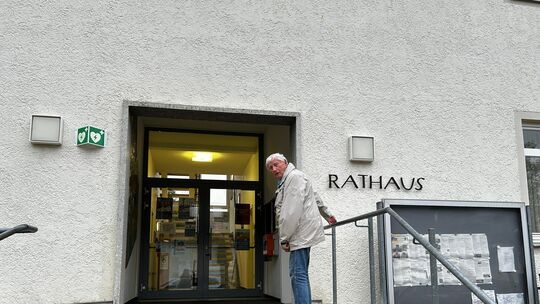 Ortsvorsteher Henrik Peter zu Ideen für eine barrierefreie Verwaltung und Vereinsräume in den Obergeschossen des Rathauses.