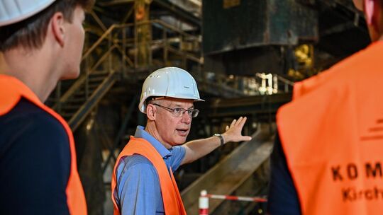 „Hier tut sich im Moment sehr, sehr viel“, macht Potthast beim Rundgang mit der Presse an diesem glühend heißen Augusttag deutlich. „Wir freuen uns auf eine fast neue Anlage“. Seit Mai ruht hier der Normalbetrieb, seit Juni läuft der Rückbau. Teile der riesigen Rottehalle sind bereits von einer schwarzen Patina befreit, die das feuchtheiße Klima mit Temperaturen von bis zu 70 Grad im Inneren der Mieten nach fast drei Jahrzehnten hinterlassen hat. Auch das wird bald Geschichte sein. „Die Luftqualität in der Halle wird sich deutlich verbessern“, erwartet Potthast. Durch die Rotte in Tunneln, wo das Material nur noch zweimal umgesetzt werden muss, und verstärkten Biofiltern aus Wurzelholz geraten auch weniger Emissionen nach draußen. Den Rest besorgen der Unterdruck, der in der Halle herrscht und Luftschleusen, die Lkw bei der Ein- und Ausfahrt passieren müssen.