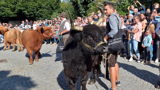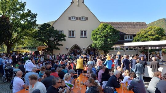 Im vergangenen Jahr hatten sich die Organisatoren bei der ersten Auflage des Albabtriebs mächtig vertan, als sie mit nur rund 1000 Besucherinnen und Besuchern gerechnet hatten. Dem schlechten Wetter zum Trotz hatten mehr als 2000 Zaungäste den kleinen Umzug verfolgen wollen. „Um das Ortsleben am Leben zu halten, gibt es nichts besseres, als ein solches Fest“, sagte Ulrich Widmann. Und so verwundert es nicht, dass laut Hartmann die Entscheidung, die Hocketse in diesem Jahr auf jeden Fall zu wiederholen, ziemlich schnell gefallen war. „Wir haben letztes Jahr gleich am nächsten Tag die Sporthalle für den 1. Oktober gebucht“, erzählte er. Doch dort wollte am Sonntag zumindest den Tag über niemand sitzen, denn das herrliche Spätsommerwetter war zu schön. Schnell war auch klar: Die Zahl der Besucher wird dieses Mal noch einmal getoppt. Um anders als im letzten Jahr lange Schlangen an den Bier- und Essensstände zu vermeiden, hat es heuer mehrere Anlaufstellen gegeben.