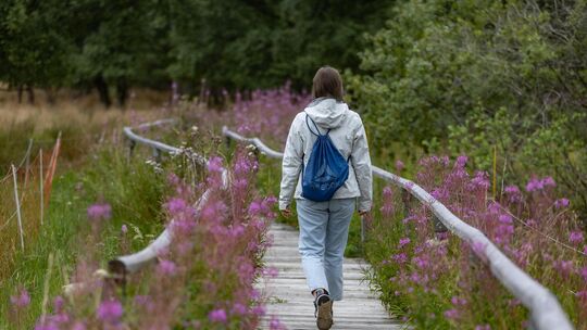 Biegt man kurz nach dem Gasthof rechts ab, gelangt man zum Holzbohlenweg, der sich durch das Moor schlängelt. Infotafeln informieren über dessen Entstehung und Bedeutung für die Tier- und Pflanzenwelt. Gut nur, dass es helllichter Tag ist. Andernfalls könnte es einem möglicherweise ergehen wie dem Wanderer in der Sage „Das Irrlicht“, der alle Warnungen von Hofbauern in den Wind schlug und nach Einbruch der Dunkelheit noch zurück ins Tal hinabsteigen wollte. Auf dem Weg durchs Moor sah er etwas glänzen im Dunkel der Nacht, ein lustig flackerndes Licht. Im Glauben, einen anderen Wanderer zu sehen, dem er sich anschließen kann, folgte er dem Licht. Doch dann, so ist es im Heimat-Buch für Kirchheim und Umgebung aus dem Jahr 1920 überliefert: „Ein Schrei des Entsetzens, ein Gurgeln des Wassers und der Wanderer ist in der Tiefe verschwunden. Eine unheimliche Stille herrscht wieder über dem Moor. Das Irrlicht hat ihn in das Verderben geführt.“