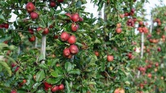 Wolle man den Obstbau rentabel gestalten, müsse man auf Spindelbäume setzen, betont Martin Weber. Bereits in dritter Generation betreibt die Familie in Frickenhausen Erwerbsobstbau. Habe man zu den Anfangszeiten des intensiven Obstbaus 100 Bäume pro Hektar gepflanzt, stünden in den Anlagen in der Region heute rund 3000 Bäume auf einem Hektar. Der Ertrag liege bei rund 30 Tonnen – ungefähr doppelt so hoch wie früher. Zudem reiften die Früchte an Spindelbäumen gleichmäßiger aus als an Hochstämmen, weil man die Bäume besser „licht“ halten könne. Bei einem Topaz etwa funktioniere der Anbau an hochstämmigen Bäumen zwar halbwegs, die Äpfel würden aber nicht die gleiche Qualität erreichen wie an Spalierbäumen.