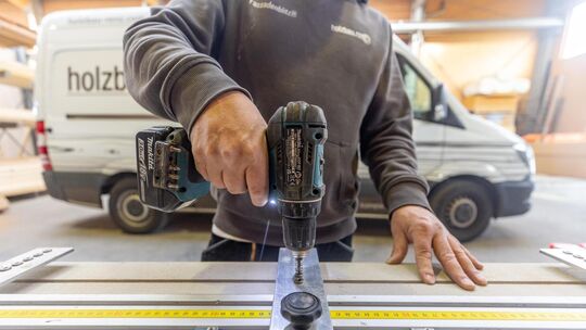 Als Zimmermann gehören Arbeiten an Hausdächern zum täglichen Brot von Matthias Renz, dem Inhaber des Kirchheimer Unternehmens Holzbau Renz. Aber auch die Montage von Holzfassaden zählt zu seinen Tätigkeiten. Eine Arbeit, bei der nach den Worten des Fachmanns schnell mal 20.000 Schrauben benötigt werden können. Renz gibt zu bedenken: „Für alles, das man öfter als dreimal macht, nutzt man eine Schablone.“