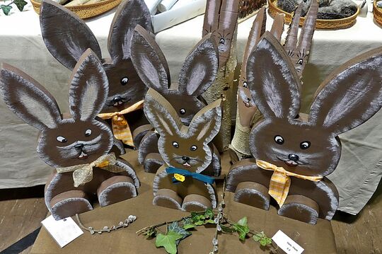 Auch für den 33. Ostermarkt in Schlierbach in der Dorfwiesenhalle, ausgerichtet vom örtlichen Trachtenverein Teck, haben sich rund 40 Kunsthandwerker und Hobbykünstler offensichtlich Monate davor ins Zeug gelegt. Ob gehäkelt, genäht, gemalt oder gedrechselt – man sieht, überall steckt viel Arbeit, Fantasie und Liebe drin. „Ich mach das selber, Schreinerarbeiten sind mein Hobby“, verrät Inge Geiger aus Ottenbach, die sich außerdem bestens mit Stich-, Band- oder Dekupiersäge auskennt.