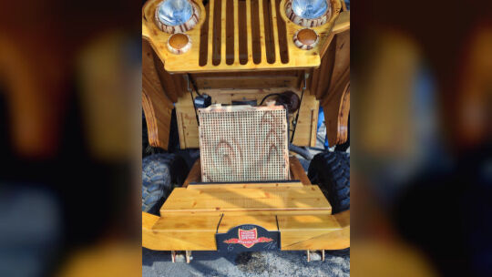 Es ist kein Fahrzeug für jeden Tag. „Vor sieben Wochen bin ich ihn zum letzten Mal gefahren“, sagt Norbert Arnold. Das Auto, von dem er in seiner „Schrauberhalle“ in Frickenhausen mit leuchtenden Augen erzählt, ist ein Jeep aus Holz. Ob Türen, Sitze, Fensterrahmen, Splinte an den Radkappen, die Kappen selbst, die Spiegelverkleidung oder das Armaturenbrett: Wo sonst Metall oder Kunststoff dominieren, hat er Kiefern- und Fichtenholz verbaut. Seit vier Jahren steht das Unikat neben anderen skurrilen Fahrzeugen im Technikmuseum in Sinsheim.