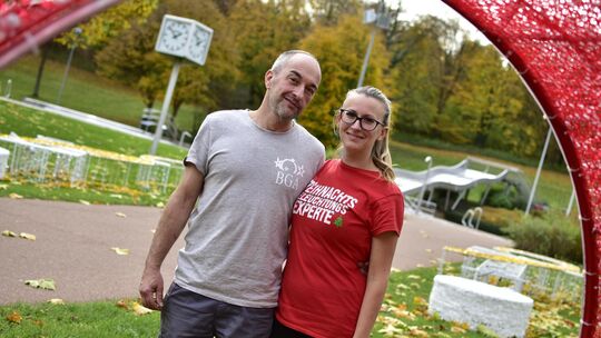 Ein bisschen was ist am Mittwoch schon zu sehen. Die Veranstalter, das Ehepaar Michael und Enikö Grözinger aus Lenningen, stecken bis zu den Ellbogen in einer blauen Kugel, deren Hälften sie mit Kabelbindern zusammenfügen. „Wir brauchen schon gut vier Wochen, um aufzubauen“, sagt Michael Grözinger. Gut, dass just an diesem Tag der Herbst sich von seiner goldenen Seite zeigt.