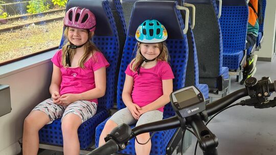 Unsere beiden Töchter und wir Eltern stehen am Kirchheimer Hauptbahnhof und warten auf den Rad- und Wanderbus der Linie 176. Als Notzinger sind wir zunächst ebenerdig nach Wernau geradelt und von dort mit der S-Bahn nach Kirchheim gefahren. Als unser Bus kommt, hilft uns der Busfahrer beim Aufladen der Räder auf den Anhänger. Auf landschaftlich reizvoller Strecke geht es nun auf die Alb bis zum Naturschutzzentrum Schopfloch.