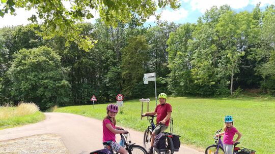 Konzentriert treten wir wieder in die Pedale. Lange müssen wir nicht treten, denn nach wenigen Metern rollt es von selbst. Direkt nach der ersten Serpentine werden die Seiten gewechselt, wir Eltern fahren vor den Kindern zur neuen Talseite hinüber. Die Steige hat keine Leitplanke, direkt neben der Fahrbahn geht es den steilen Abhang hinunter. Wir werden entspannter, doch bald verzieht die Kleine unglücklich die Mundwinkel. „Ich kann nicht mehr“, klagt sie. Wie kann das sein, wir lassen es doch nur rollen? „Meine Hände tun weh“, setzt sie erklärend hinzu. Ach so, es sind eben noch sehr kleine Händchen, die die Bremsgriffe umfassen. Wir machen eine Pause und trinken etwas, nach ein paar Minuten geht es weiter. Der Talboden kommt jetzt rasch näher, und schließlich haben wir es geschafft. Wir verlassen den Wald und sind in Oberlenningen angelangt.