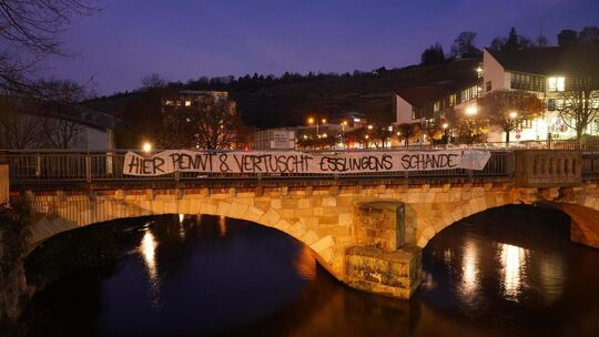 Ein Jahr nach dem gewaltsamen Tod von Luca S. in Esslingen hängen an mehreren Standorten in der Innenstadt Transparente, die an den Verstorbenen erinnern, der mit 31 Jahren aus dem Leben gerissen wurde. Darauf zu lesen ist deutliche Kritik an der Polizei und der Staatsanwaltschaft.