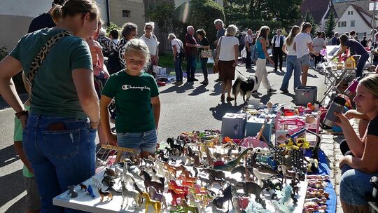 Laut Leon Greiner war trotz des guten Wetters am Freitag der Zwetschgenmarkt bedeutend weniger besucht, als im letzten Jahr, wo es rappelvoll war. Mit am Stand hilft ihn sein Kumpel Marek Hermann, dessen Bruder wiederum daneben unterschiedliche Schnapssorten anbietet. Noch heute im Angebot ...