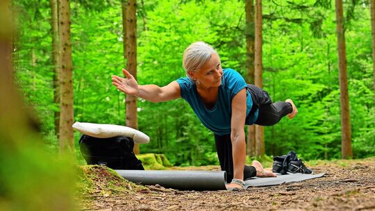 Letzteres weckt Assoziationen vom gedehnten Rücken einer Kuh. Die beiden Übungen werden im Wechsel langsam und fließend ausgeführt. Nach diesen und weiteren Yoga-Sequenzen spazieren die Teilnehmerinnen und Teilnehmer schweigend aus dem Wald heraus. Jeder Wald bietet geeignete Orte zum Praktizieren von Yoga, manchmal genügt ein Schritt zur Seite. „Wald tut gut“, sagt Buck und ergänzt: „Wichtig ist die Achtsamkeit.“