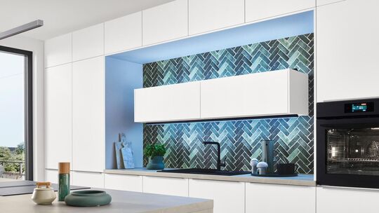 „Ein weiterer wichtiger Trend ist die zunehmende Integration von dezenten bis effektvollen Lichtquellen direkt in die Küchenmöbel und Livingelemente, Schrankvarianten, Schubkasten-, Auszugs- und Regalsysteme“, ergänzt Volker Irle. Eine technische und handwerkliche Meisterleistung, denn die integrierten LED-Leuchten sind zum Teil außergewöhnlich filigran und die hierfür notwendige Technik nahezu unsichtbar. „Hinzu kommt, dass zunehmend smart vernetzte Beleuchtungskonzepte per App- und Sprachsteuerung gefragt sind.“