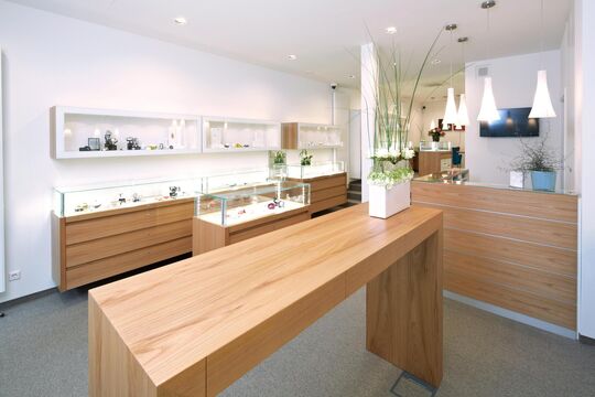 Viele Mitarbeitende begleiten das Geschäft seit Jahrzehnten. Renate Springer gehört seit 1994 zur Belegschaft und unterstützt auch im Ruhestand weiterhin in Teilzeit. In der hauseigenen Uhrmachermeisterwerkstatt sorgt Olaf Geißelhart mit seinem fundierten Fachwissen seit über 18 Jahren für die fachgerechte Reparatur von Armband- und Wanduhren. Jasmin Haas bringt seit 16 Jahren ihre Kenntnisse in den Bereichen EDV, Soziale Medien und Lehrlingsausbildung ein. Sowohl sie als auch Clarissa Seegers, die nach einer familiären Pause seit zwölf Jahren wieder in Teilzeit mitarbeitet, haben ihre Ausbildung im eigenen Haus absolviert. Aktuell befindet sich mit Lea Koch eine weitere engagierte Auszubildende im dritten Lehrjahr und setzt die Ausbildungstradition des Hauses fort.