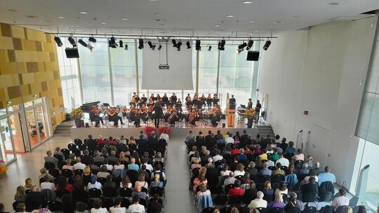 Zu den Gratulanten bei der Einweihung des Hölderlin-Gymnasiums zählten neben Ministerpräsident Winfried Kretschmann auch Ehemalige. Gefeiert wurde mit zahlreichen Beiträgen der Schüler und Sanierungsbeteiligten.