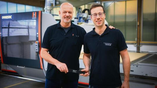 Der (Meter-)Stabwechsel ist eingeläutet: Sohn Max Fiegenbaum, der das Handwerk von der Pike auf gelernt hat, steht in den Startlöchern. Von 2011 bis 2014 absolvierte er zunächst eine Schreinerlehre und studierte anschließend Holztechnik in Rosenheim, bevor er ab 2021 in der Baustellenpraxis Erfahrung sammelte. Nach einer Weiterbildung zum Betriebswirt des Handwerks steht nun der Weg in die Unternehmensführung offen. Am 1. Juli 2025 übernahm Max, begleitet von der bewährten, zehn Köpfe starken Belegschaft und der Familie als starkem Rückhalt, die Geschäftsführung. Außerdem bieten, ein großzügiger Anbau an die bestehende Werkstatt und die Investition in einen hochmodernen, neuen Maschinenpark seit diesem Jahr noch mehr Möglichkeiten für die künftige Entwicklung. Mit der Übernahme und der Erweiterung verbinden sich in vorbildlicher Weise Qualität und Tradition mit neuen Impulsen für Kunden, Partner und Mitarbeitende. Die Schreinerei Fiegenbaum – auch in Zukunft Ihr bewährter Partner im Lenninger Tal.